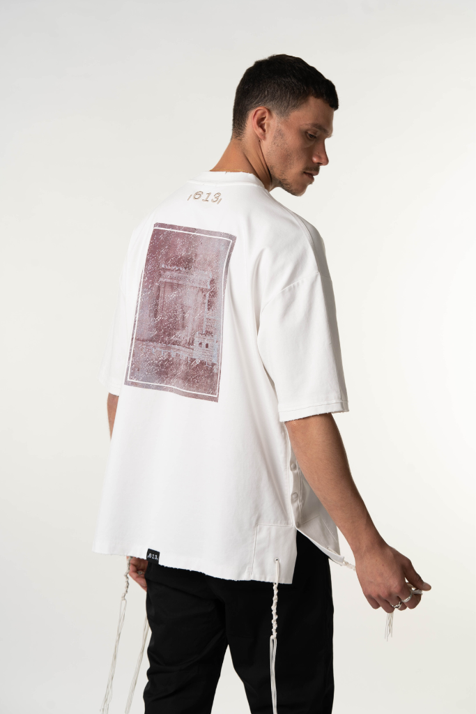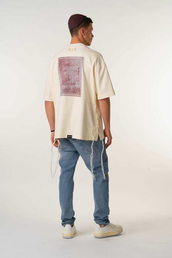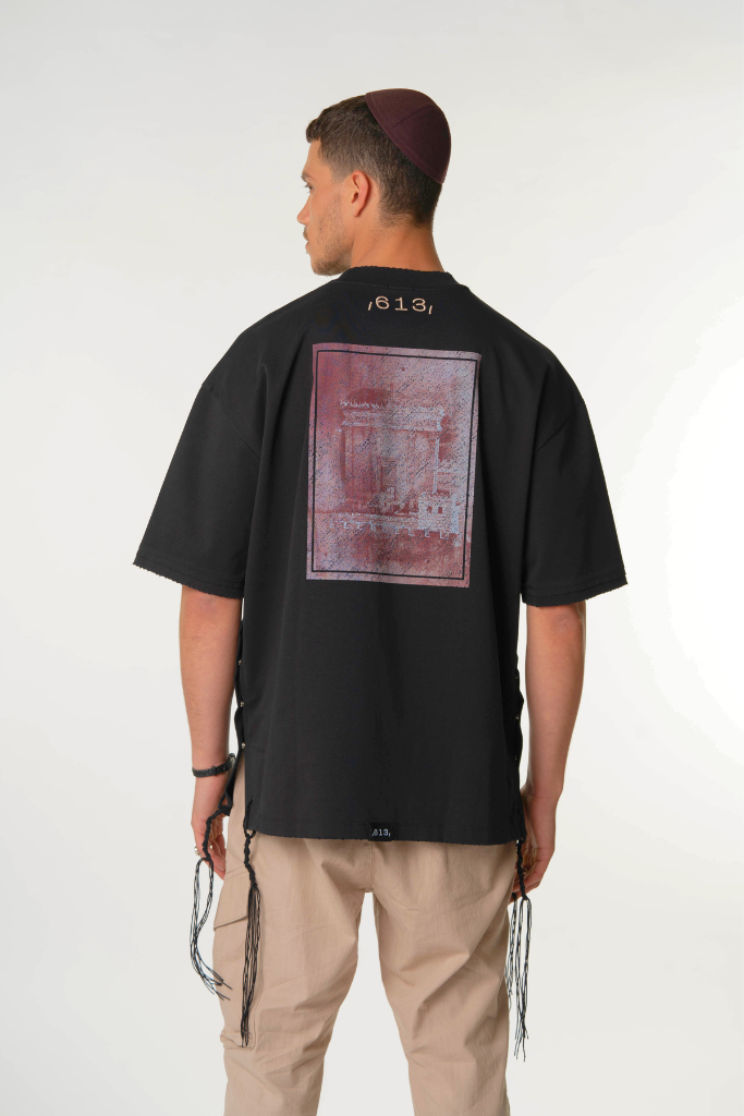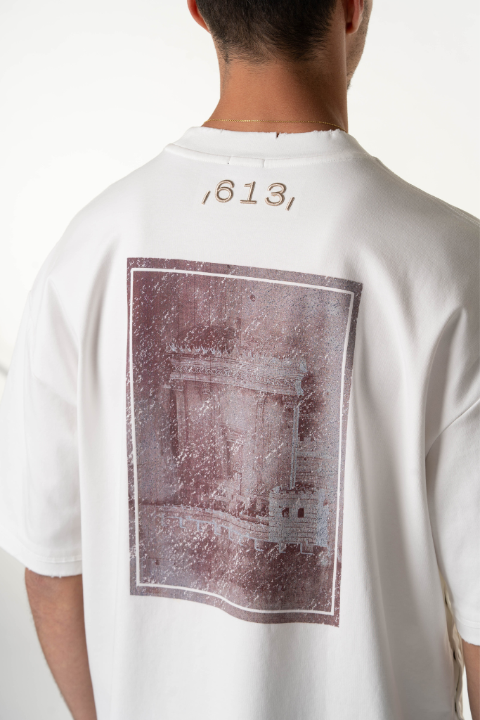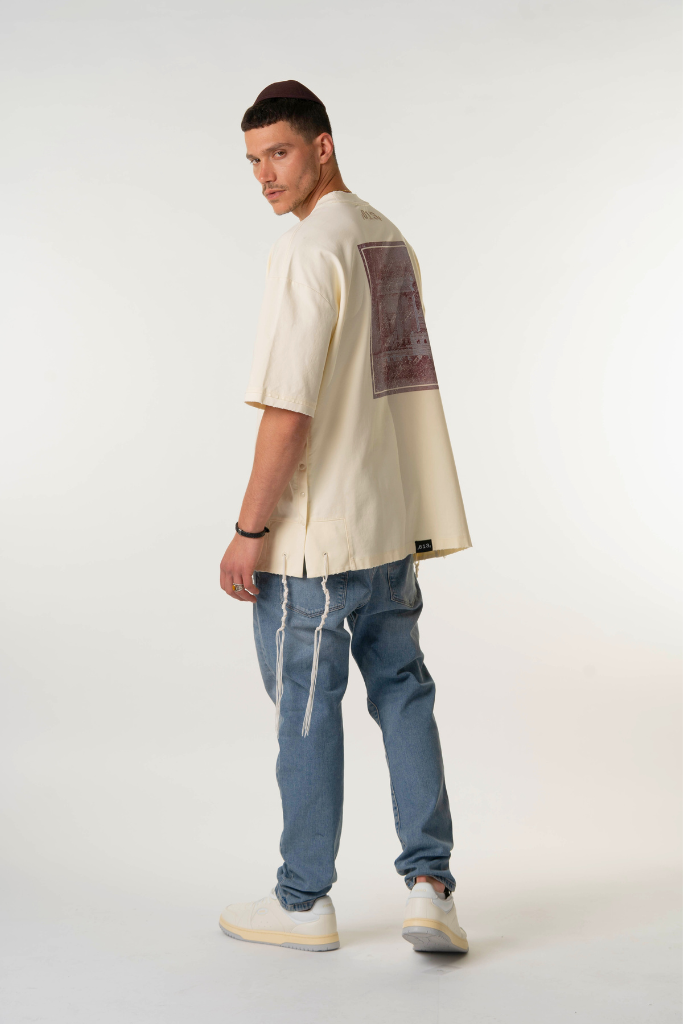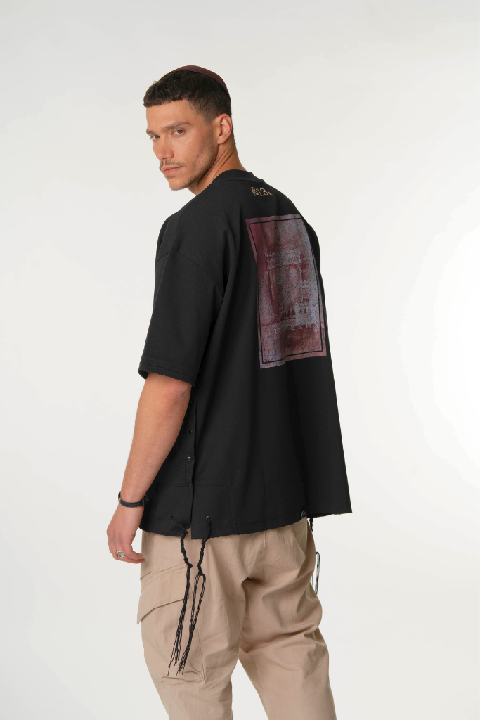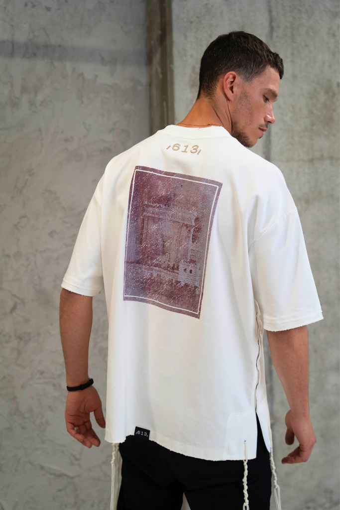 On the back of the shirt is an artistic print of the Temple, in a design that combines contemporary style with deep consciousness.